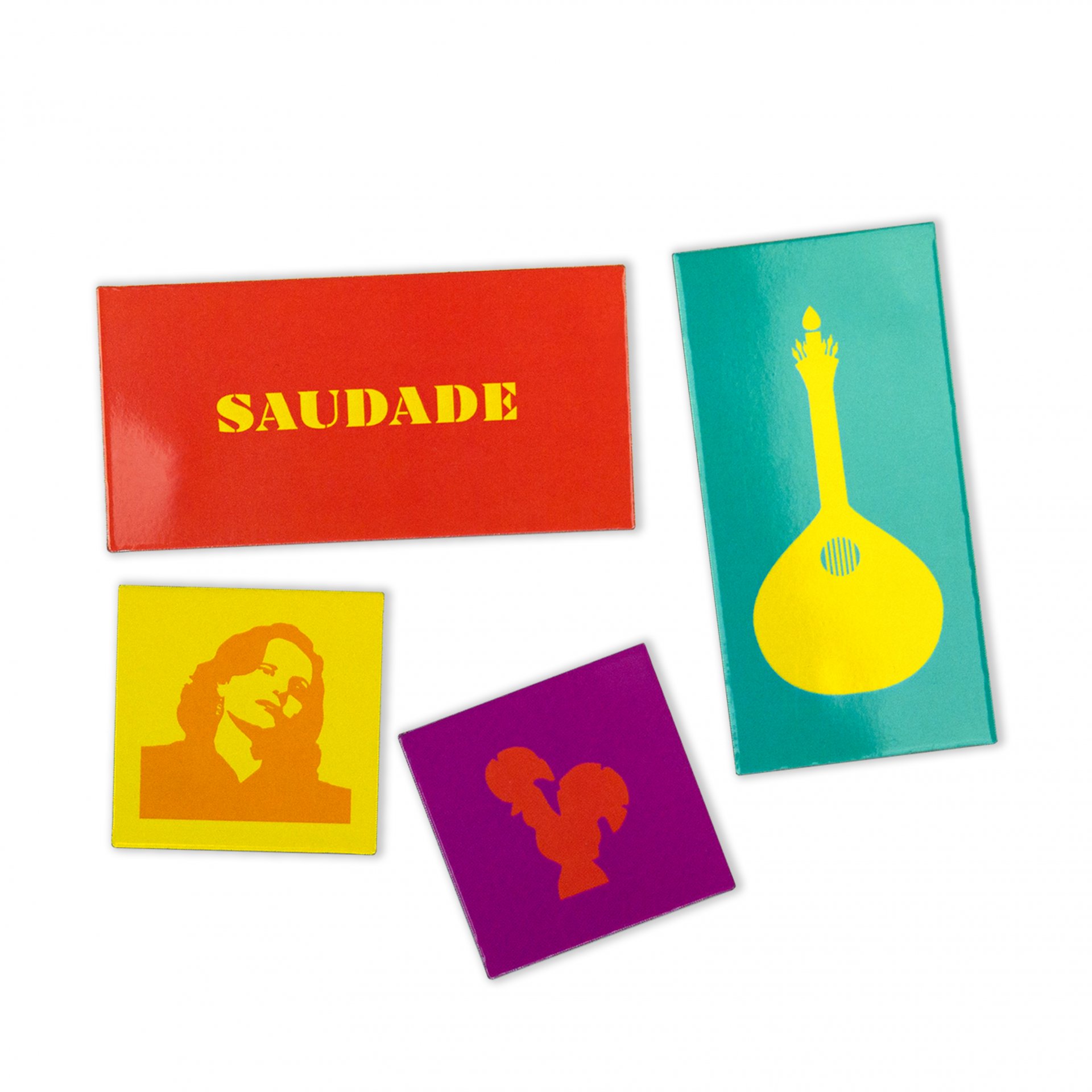Ao som do fado, passeando na saudade, são vários as ilustrações sobre a nossa história que representa esta coleção composta por dois packs de 4 ímanes cada um.